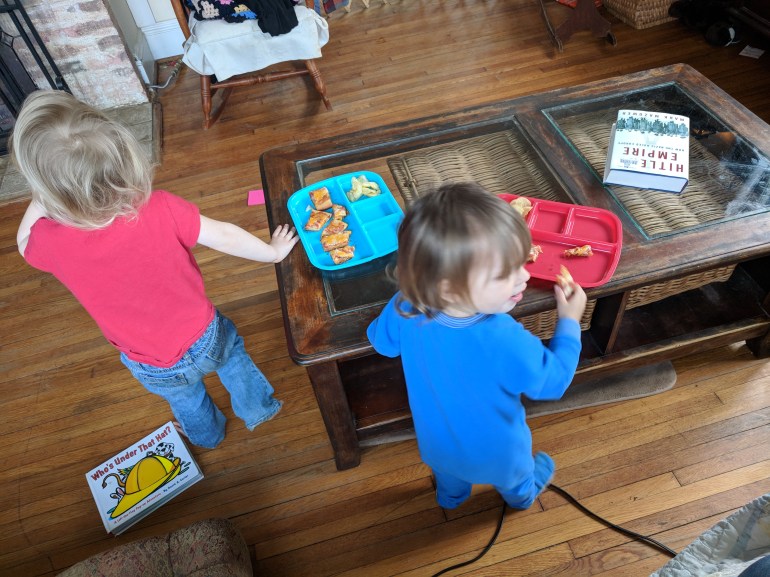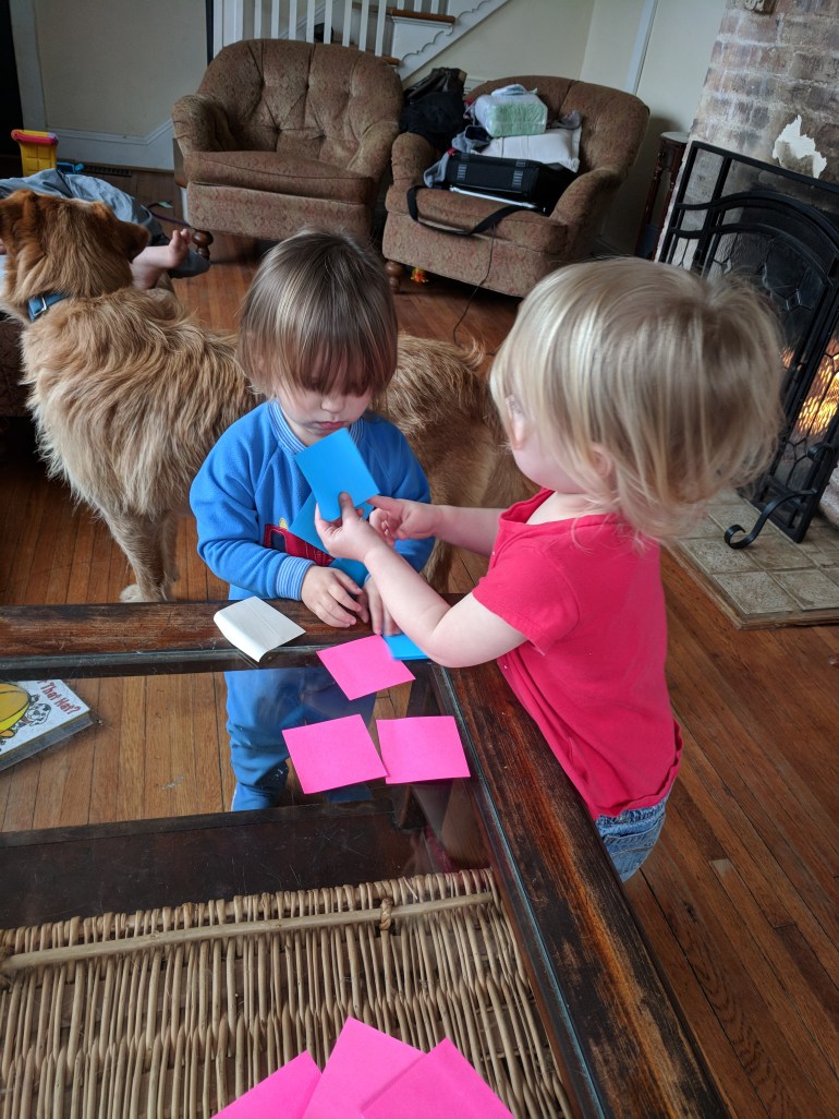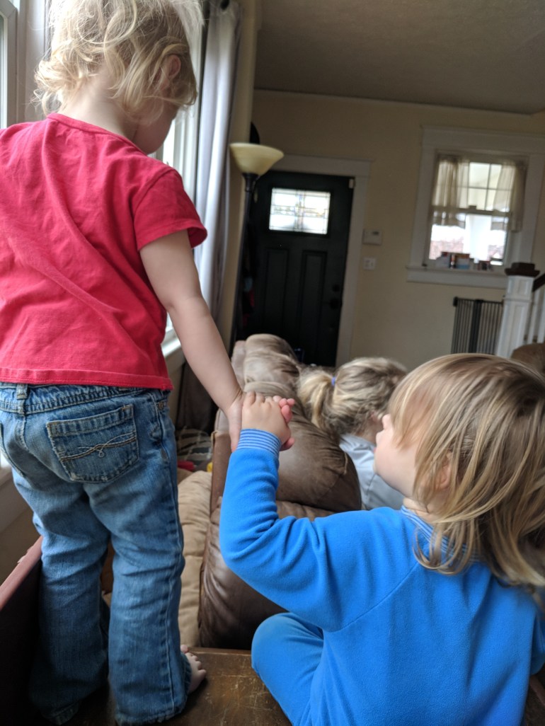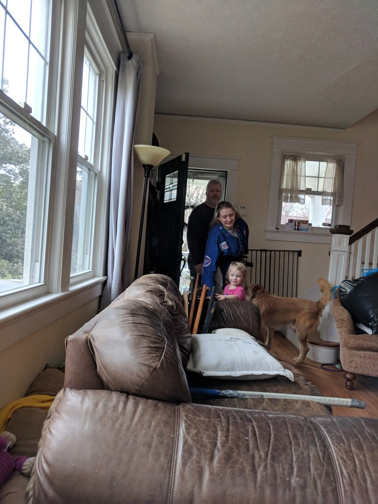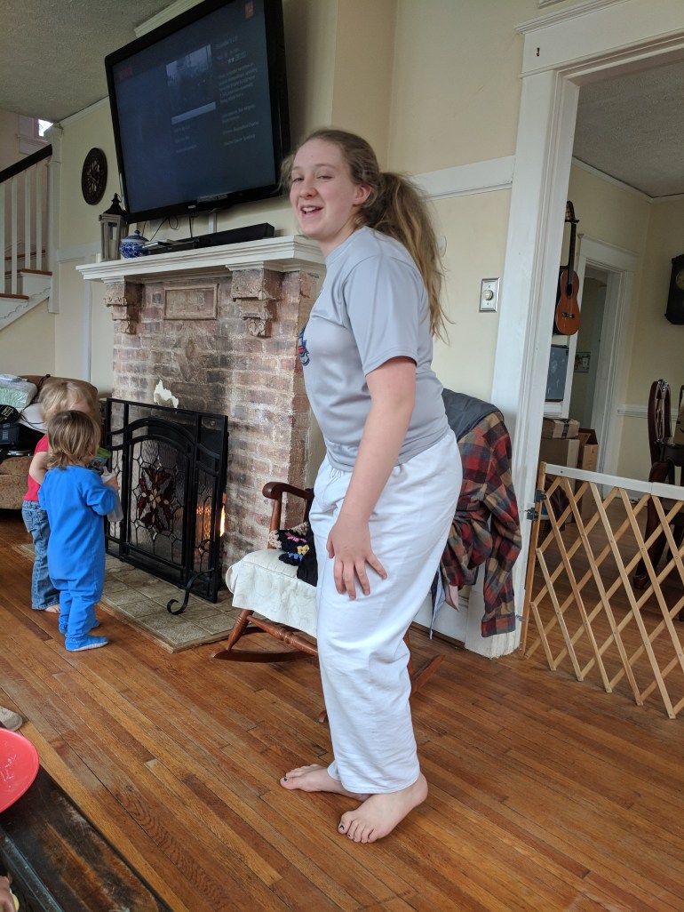 Haven’s not feeling very well, which means extra cuddles!Annora called from the karate school. Her knee was hurt.She came into the house limping, barely able to put any weight on it or bend it.Kyle, Anna, and Joshua came to Lynchburg for a friend’s wedding. Joshua stayed and played with Haven during the wedding.