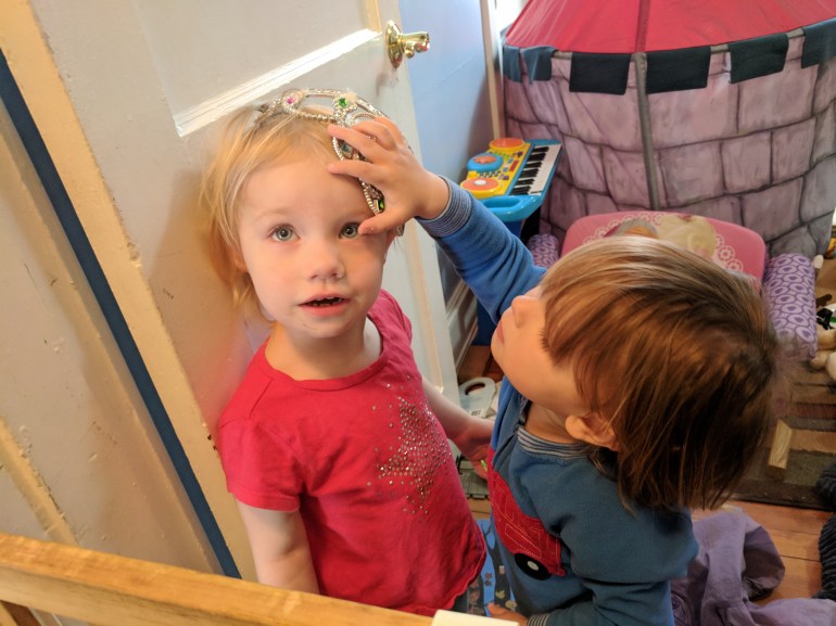 He was very interested in making sure Haven had her crown in place, meaning over her eyes, like glasses. Haven loved being crowned.