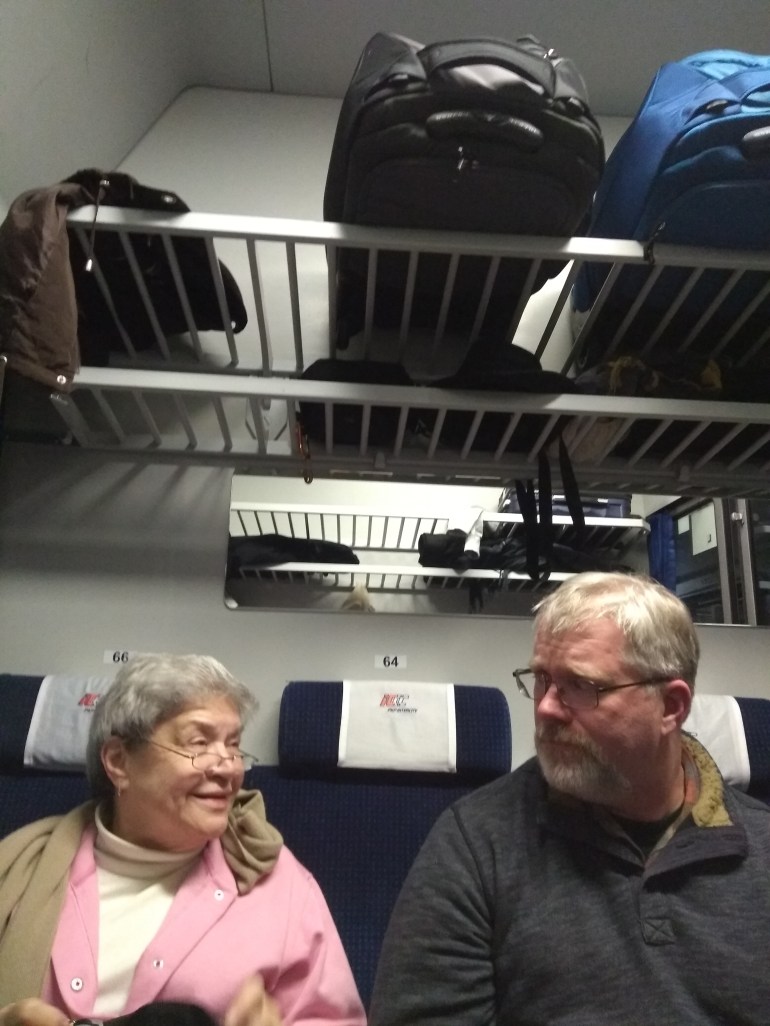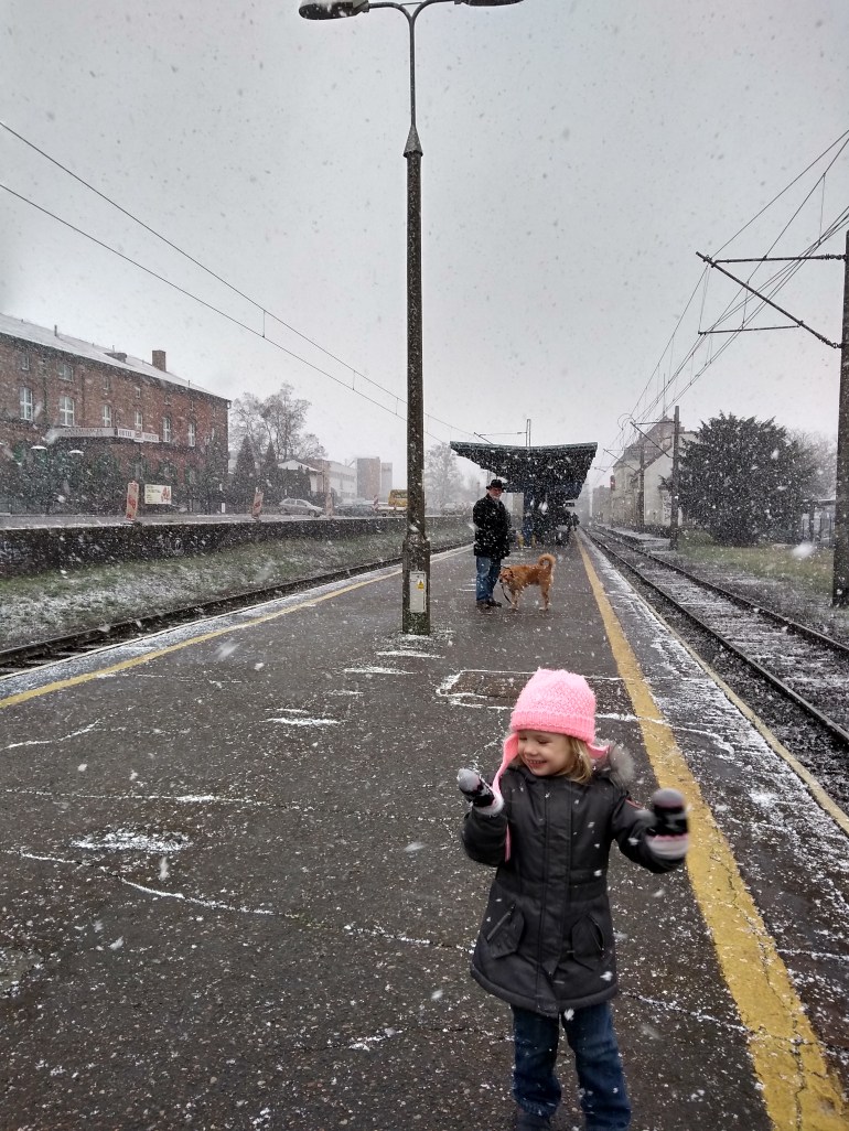 It started snowing again. It was off and on, but the snow was heavy. We grabbed some sandwiches and pastries for a late lunch and headed to the train station.