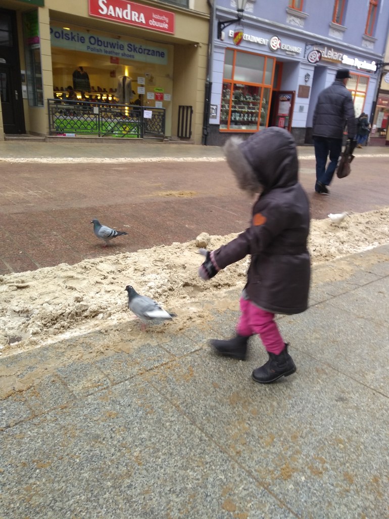 Also in Toruń: pigeons. Haven never did catch one, but a couple of them left her nasty little “gifts” on her coat. 😝 Gross!