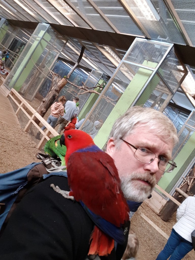 Meanwhile, back in Łódź, Brian and Haven had a feather-tastic day visiting the Papugarnia Carmen Parrot Center…