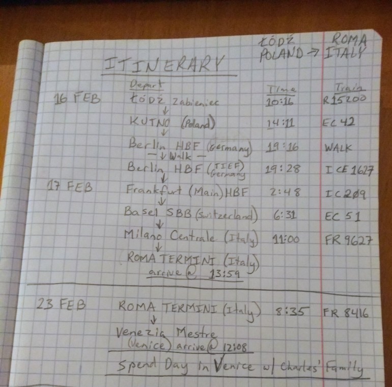For her 15th birthday, Brian and I bought Annora tickets to the Twenty One Pilots concert in Łódź, to take place February 15. But things changed when we discovered that I was pregnant because our exciting travel plans for the coming summer needed to be put on hold for a year. Then some friends let us know they would be in Rome in February, the week after the concert. With Brian not needing to be on campus for Mich of the month, and able to hang out with Haven after preschool each day, Annora and I decided to take the train all the way to Rome!
